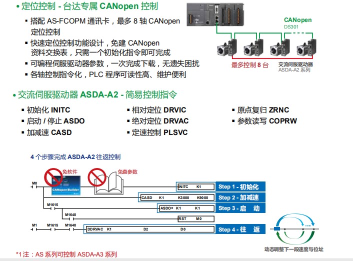 | AS200 | AS228T-A | 欧式端子16DI,12DO(NPN), 4组200K AB相输入, 6轴200K AB相输出, 64K步容量, 内建以太网口, RS485x2, 集成Canopen |
