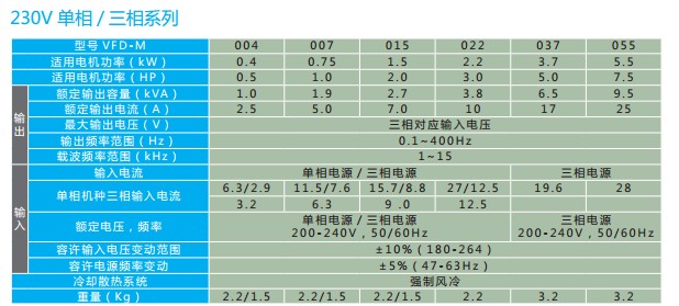 | VFD-M | VFD022M23B |