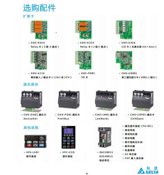 | VFD-E | VFD015E23C | 3P220V,1500W,IP20,内置CanoPen通讯接口 |