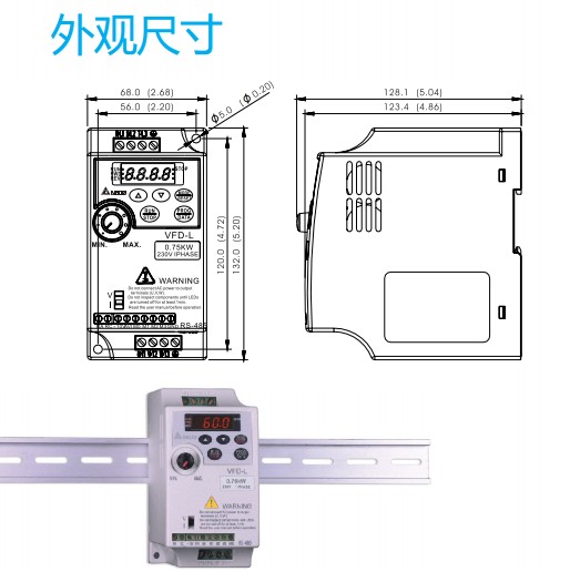 | VFD-L | VFD007L21B | 750W,1P230V,标准机,内建EMI filter |