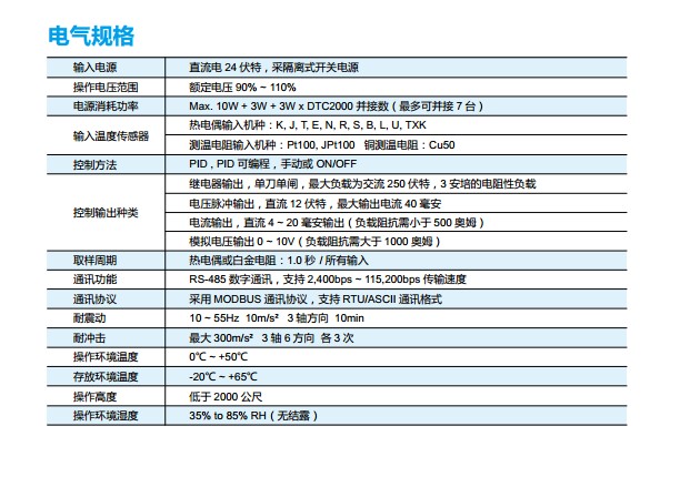 | DTC1000V | 主机, 0~14V电压脉冲/继电器(默认)输出, 32段编程, 485通讯, 2警报 |
