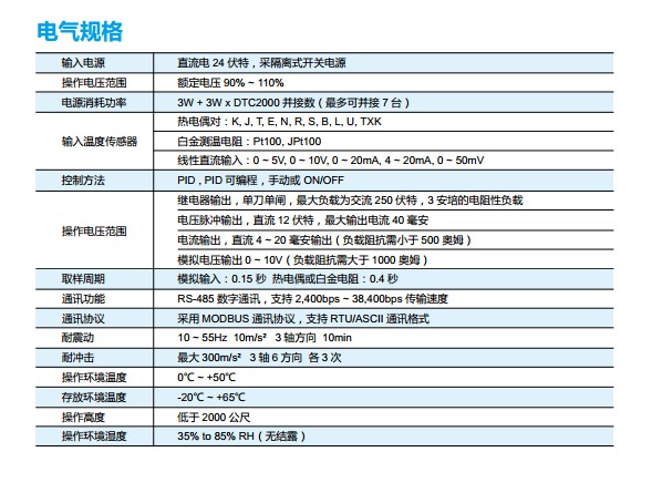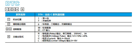 | DTC1000V | 主机, 0~14V电压脉冲/继电器(默认)输出, 32段编程, 485通讯, 2警报 |