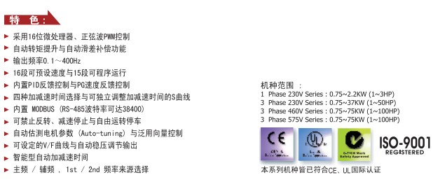 | VFD-B | VFD075B23A | 220V/3P,7.5kW,刹车内建,DC电抗器选购IP20 |