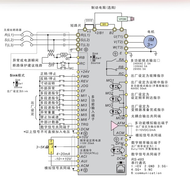 | VFD-B | VFD075B43A | 380V/3P,7.5kW,刹车内建,DC电抗器选购IP20 |