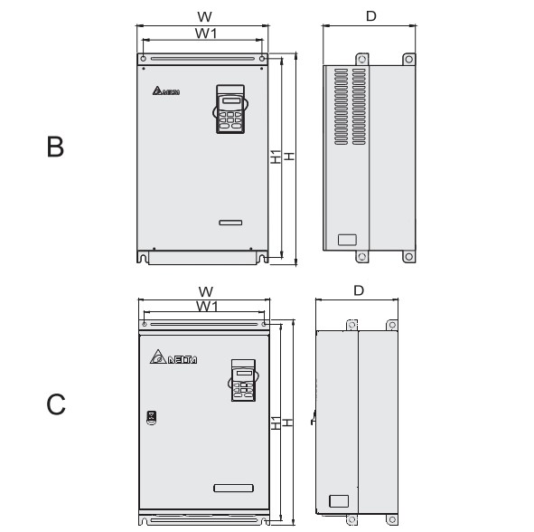 | VFD-B | VFD750B43C | 380V/3P,75kW,刹车选购,DC电抗器内建IP20, |