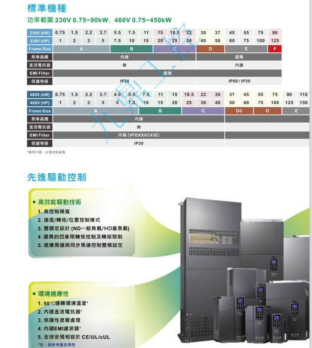 VFD-CH VFD900CH43A-00 380V/3P,90kW,内置10k PLC,刹车选购,DC电抗内建, UL,CE,IP00,UL OPEN TYPE